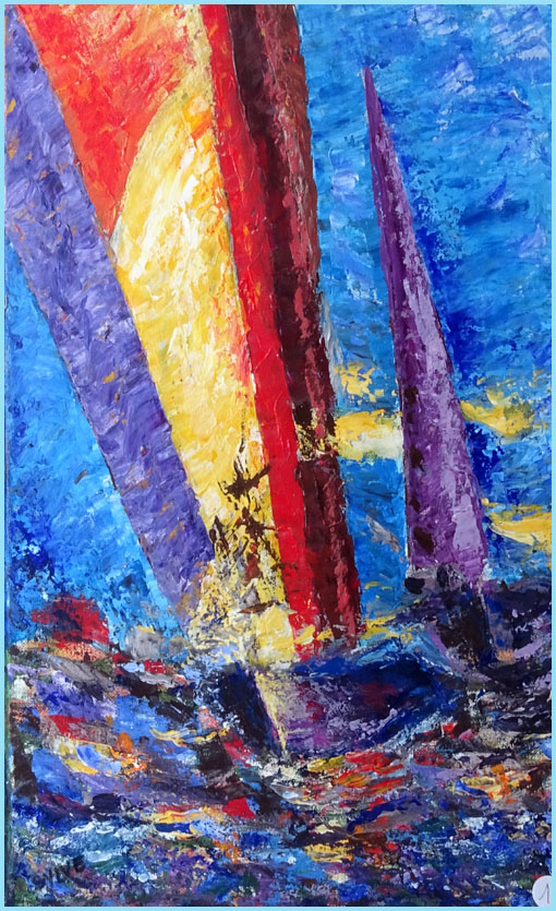 Tout a commencé par la peinture. Native d’Alès (Gard), elle est basée à Laudun. C’est aussi là que résidait le peintre contemporain Christian Parra (aujourd’hui disparu) qui l’éveillera à l’art pictural. Elle suivra ses cours durant plusieurs années. Elle laisse aujourd’hui libre cours à son imagination, oscille entre figuratif et abstrait pour cristalliser ses émotions. « Pas de thèmes ni de sujets trop précis, je laisse cela aux photographes plus aptes à capter la réalité », dit-elle en parlant de son époux, versé dans l’art photographique.