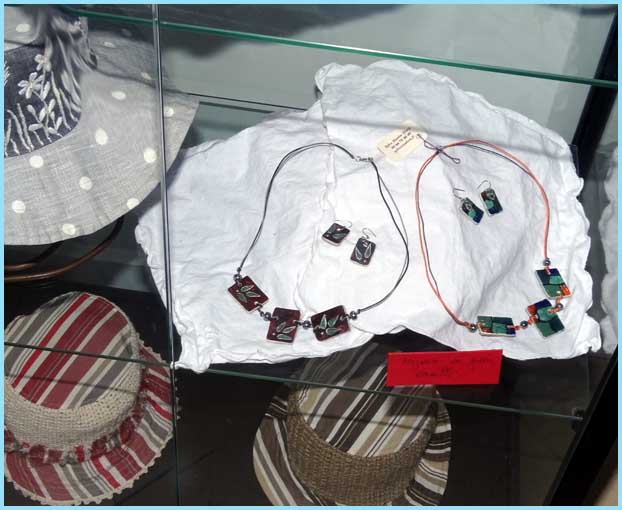 L’exposante a plus d’une corde à son arc. « Je m’éparpille ! », nous a-t-elle confié avec un sourire malicieux. Effectivement, des tableaux colorés captent d’abord le regard. Puis des sculptures et poteries accrochent l’œil. Des chapeaux et des sacs font de même. Avant que des bijoux fantaisie ne retiennent l’attention devant une vitrine. « Je suis une multi-créatrice », confirme Sylvie Martin-Sforzi.