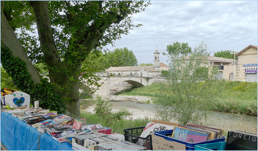 l'ombre des platanes, et longe la rivière du Lez. En face,