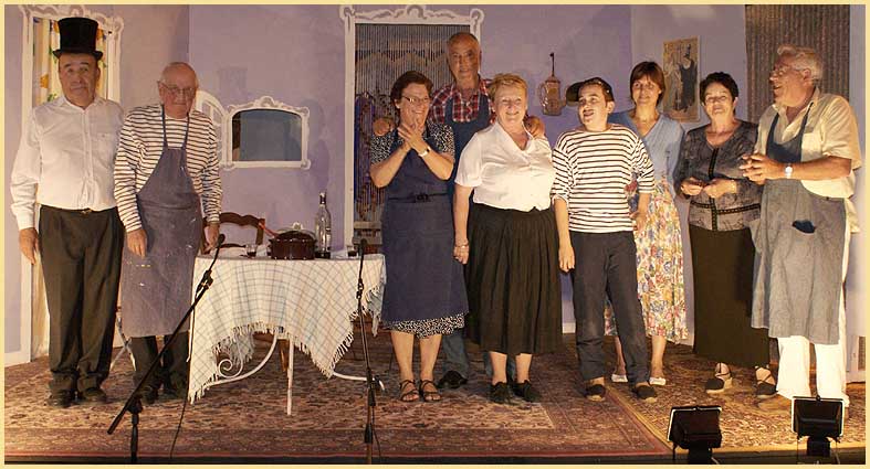 • Abrité de la pluie, à l’intérieur de la collégiale, un tout autre spectacle mettait à contribution la fameuse troupe des Tréteaux des Grès, qui, à défaut de nouveau spectacle, puisait dans la réserve des succès passés en présentant : « Si Pagnol m’était conté ».