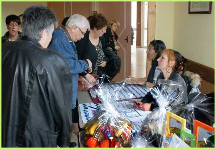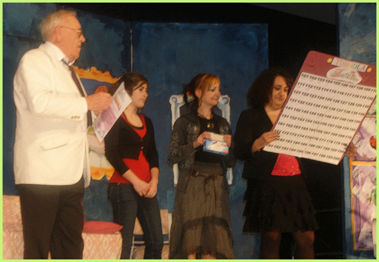 La MAM est à l'accueil.              Nadine Gillet (MAM) et Gérard Blanc (Tréteaux).            Une tombola succède au spectacle.