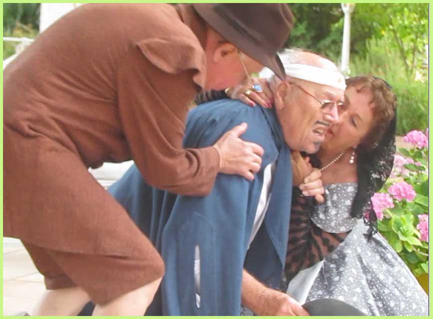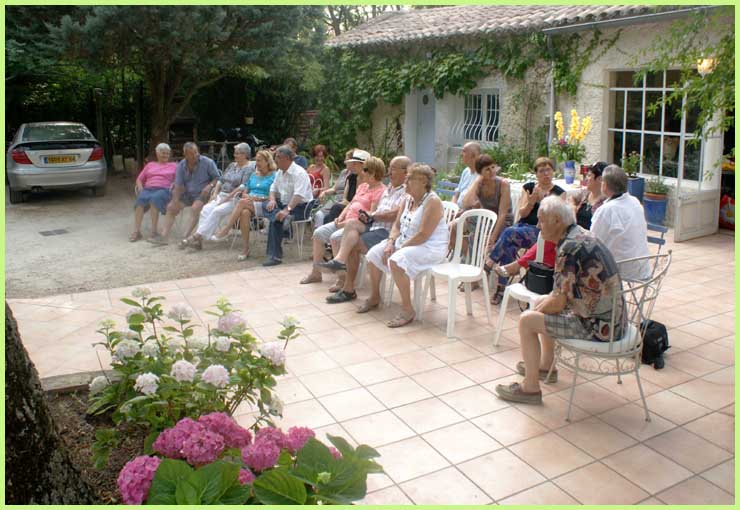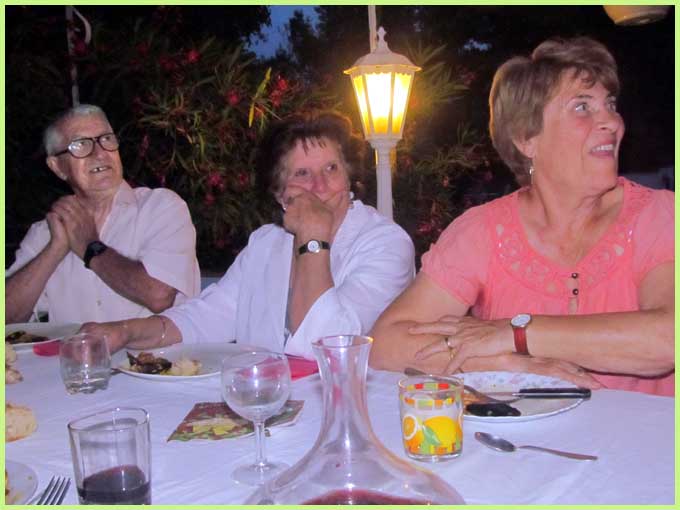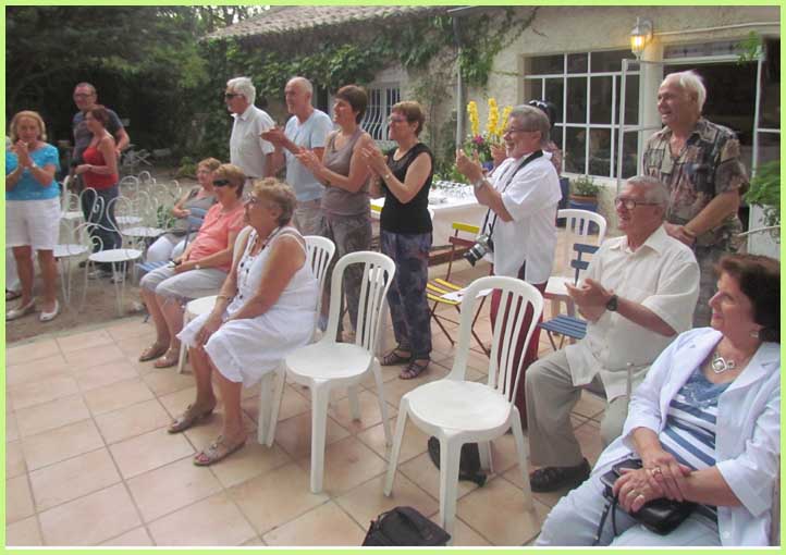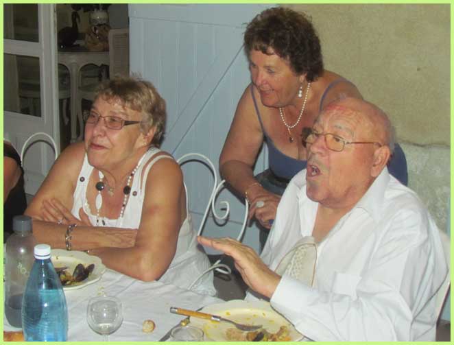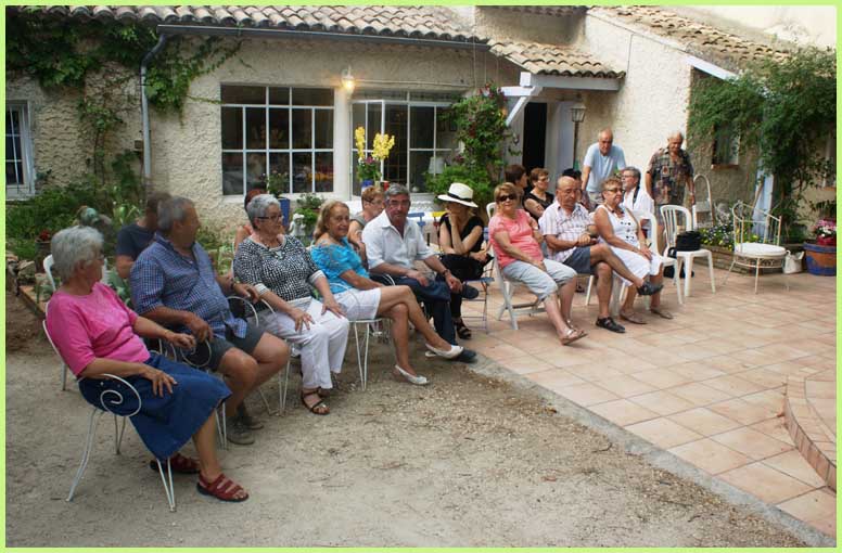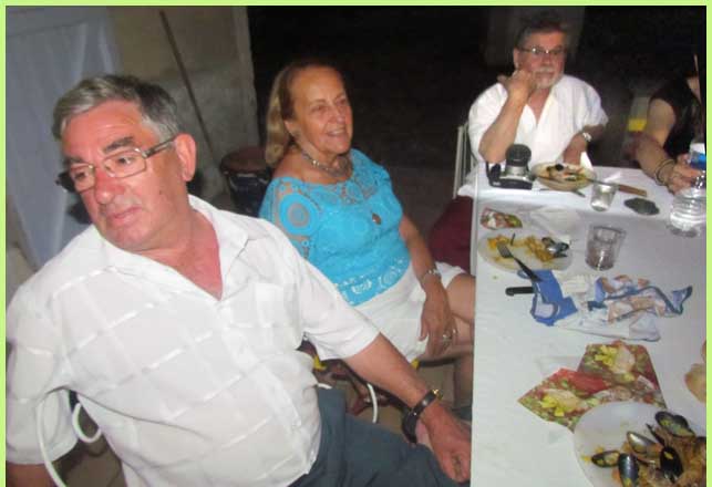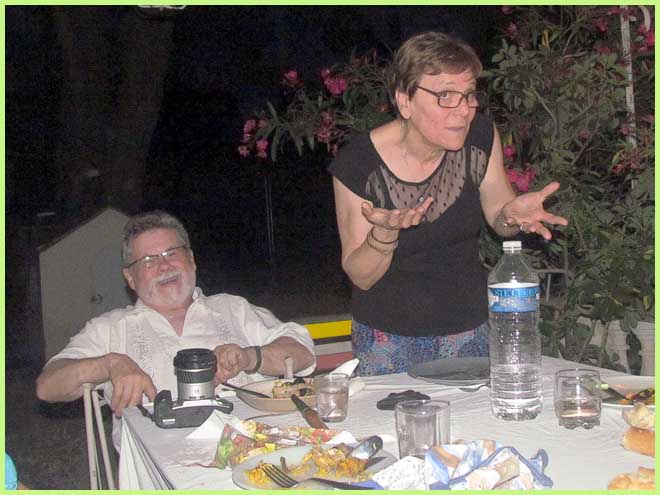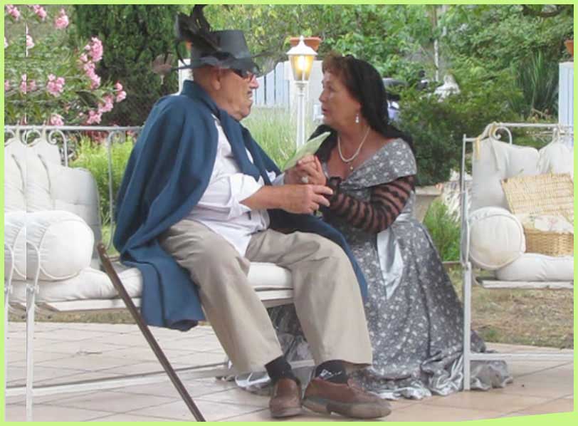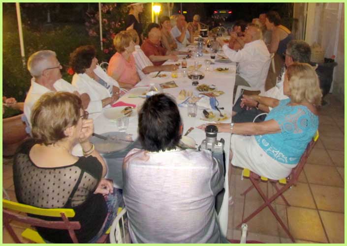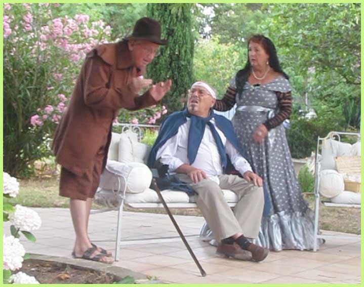 ![]() Les commentaires vont bon train après le spectacle. Ce Cyrano-là n'était bien joué qu'à huis clos pour une poignée d'intimes que consolera une paella, au demeurant, fort bonne. |