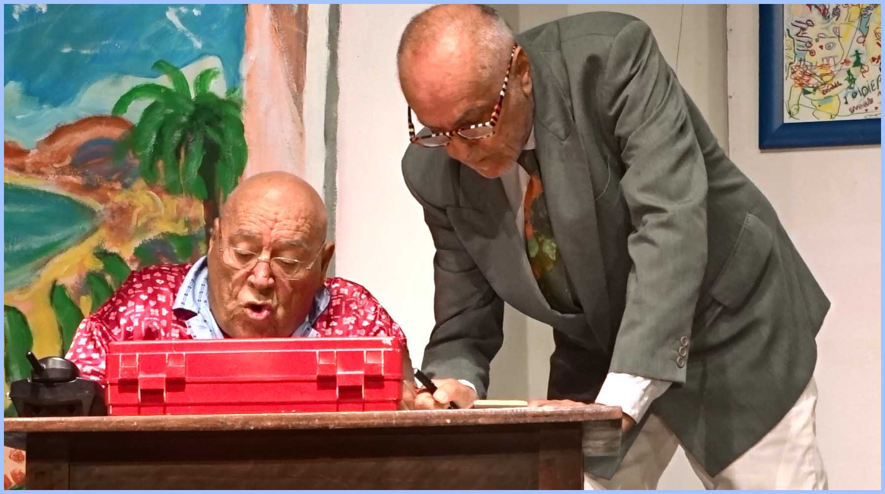 confondu en remerciements. A ses côtés, Gérard Blanc, directeur de la troupe