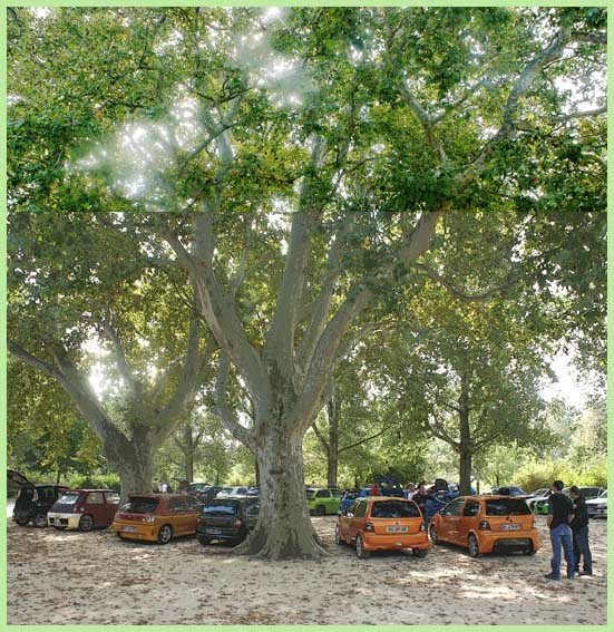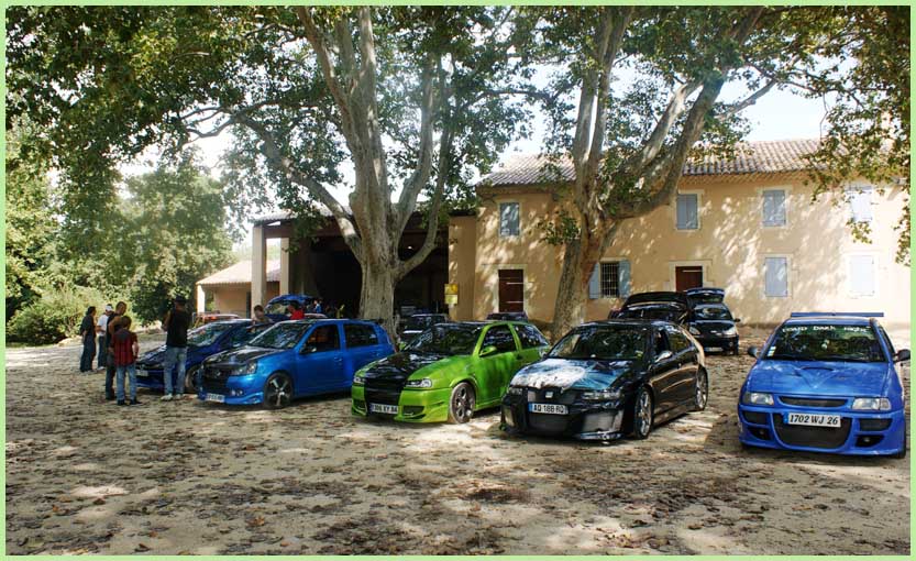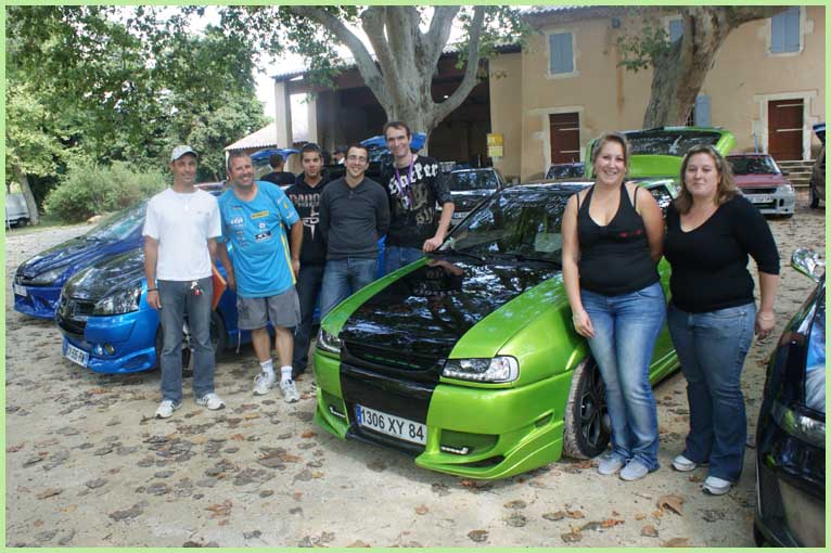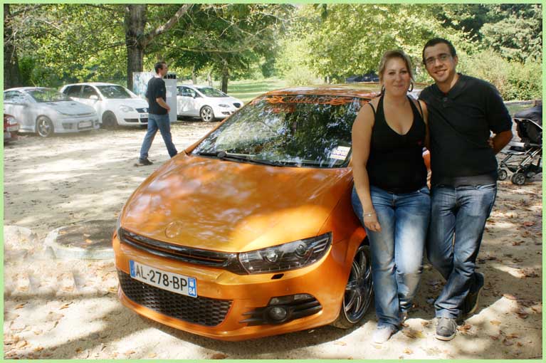 Cela se situe dans la plaine du Rhône. Aucun riverain ne risque en effet d’être gêné par le bruit, accru par des modifications sur le moteur et le pot d’échappement, une sono renforcée et des musiques tonitruantes. Le tout peut avoisiner 150 décibels ! Ce doux délire sonore est habillé par une belle esthétique, à partir de voitures de séries superbement trafiquées. Témoin cette Renault Twingo orangé, conduite par Marion et Stéphane, dont l’avant (phares et pare-chocs) est celui d’une Volkswagen Scirocco-GTS, ce qui l’allonge de 15 cm et l’élargit de 4 cm !