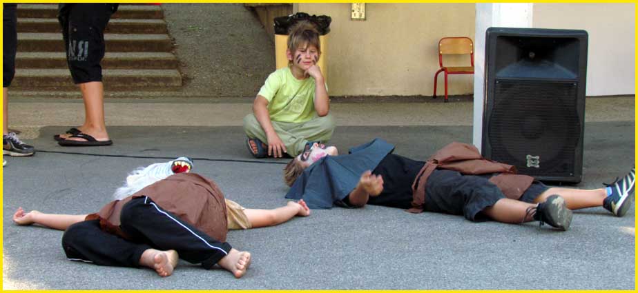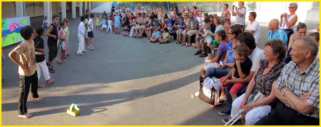 Même topo pour la cession d’août, qui vient d’aboutir à une seconde fête, haute en couleurs et flonflons exotiques, à partir d’un canevas incroyablement diversifié, étalé sur les saisons, le pastiche du football et des sports martiaux et autres événements d’actualité librement chorégraphiés. Le tout avec la complicité d’Emilie Baumann, directrice, et de son équipe d’animateurs, qui s’amusent autant, voire plus, que leurs jeunes protégés. Quelle belle osmose !