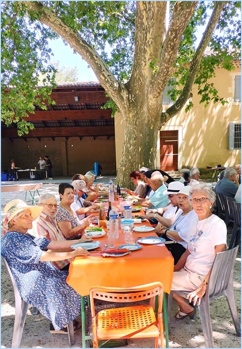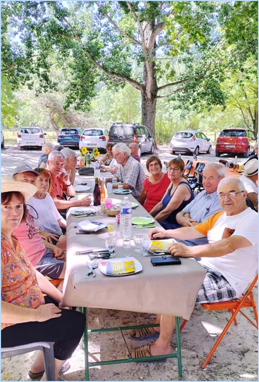 Pour rompre avec la chaleur étouffante, l'âge d'or mondragonnais est allé pique-niquer à l'ombre des platanes de la ferme de l'Ile-Vieille. Quelque peu contrariée par la canicule, cette journée festive a diminué l'effectif habituel, ramené à seulement 67 convives. Faute de concurrents, le concours de pétanque a été annulé. Seuls quelques courageux se sont contentés de taper le carton en se délectant de boissons rafraîchissantes pour éviter la déshydratation. Prochains rendez-vous : pique-niques à l'Ile-Vieille (11 août, 1er septembre), superbe virée sur le Canal du Midi répartie sur deux dates en fonction de l'affluence (8 et 14 septembre). Inscriptions auprès de Francette (présidente) 06.14.27.72.66 ou René 06.86.85.51.74 ou les mardis et vendredis au foyer 04.90.51.88.32. J. P.