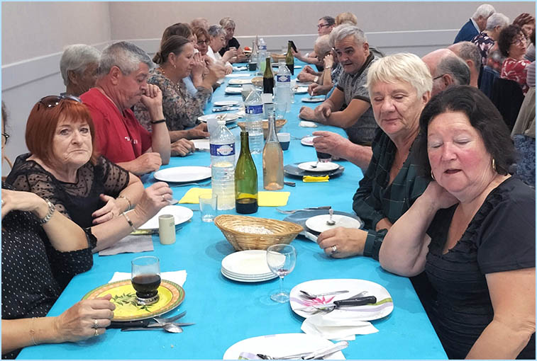 Le foyer de l'âge d'or continue de partager du bon temps. Un récent couscous, préparé par l'Atelier des Gourmets, a régalé près d'une centaine de convives à la salle des fêtes. Le lendemain, suivaient une balade à Avignon et un spectacle sur glace. Cette mi-octobre était ensuite marquée par un concours de belote. Parmi les 24 joueurs, les 4 premiers vainqueurs (Maryse Roche, Philippe Pio, André Bernouin et Serge Azaïs) ont été gratifiés d'une invitation gratuite au prochain repas mensuel du foyer. D'autres lots ont été répartis en fonction du classement. Tout ceci nous amène à la prochaine assemblée générale, suivie d'un bon repas à la salle des fêtes le jeudi 3 novembre. On y découvrira le calendrier festif de la saison nouvelle.
