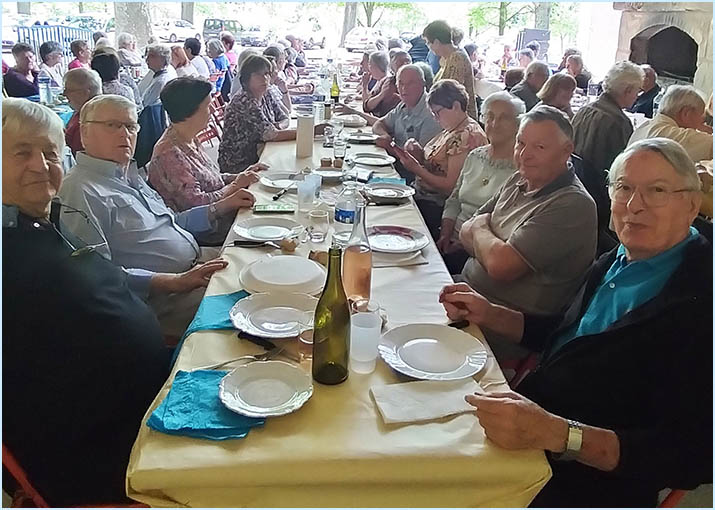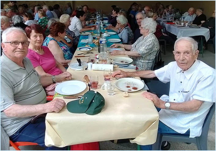 Aux beaux jours, les repas mensuels du Foyer de l'âge d'or mondragonnais désertent la salle des fêtes. On lui préfère le quartier d'été qui a pour cadre bucolique la ferme de l'Ile-Vieille. Plus d'une centaine de convives y ont partagé un bon menu : assiette anglaise, porcelet cuit à la broche, fromage et dessert. D'éventuelles parties de pétanque ou de belote restent toujours possibles à l'ombre des platanes. Mais en début de soirée, un orage a écourté cette belle journée. Prochains rendez-vous : pique-niques à l'Ile-Vieille (13 juillet, 10 août, 7 septembre), belote au foyer (19 octobre), sorties (22 juin Romans et musée de la chaussure, 21 septembre Sète et spectacle cabaret), repas à la salle des fêtes (5 octobre, 2 novembre après l'assemblée générale, 7 décembre pour Noël). Contact : 04.90.51.88.32. J. P