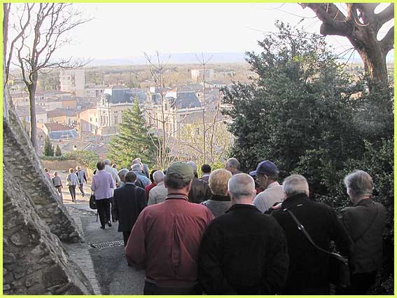 Les élus, la paroisse, le tout-Bollène gravissent et descendent les dénivelés de la colline du Puy dans un esprit bon enfant. |