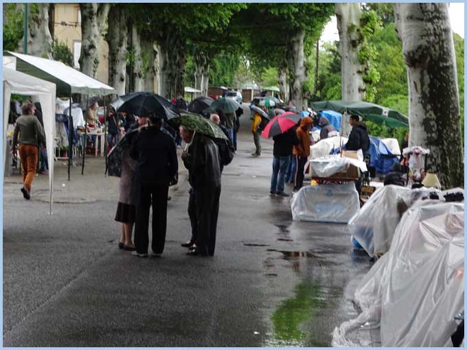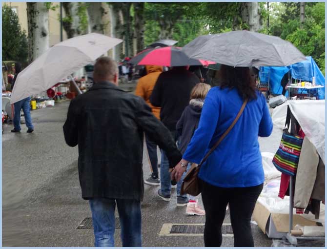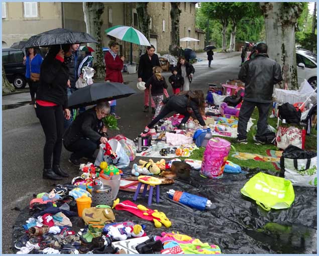 Vide-grenier : sourions sous la pluie !