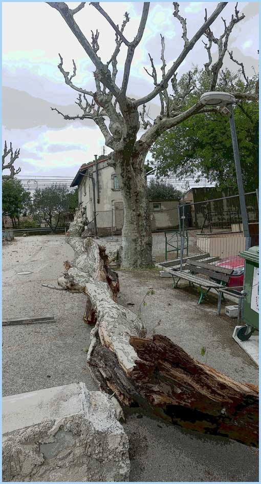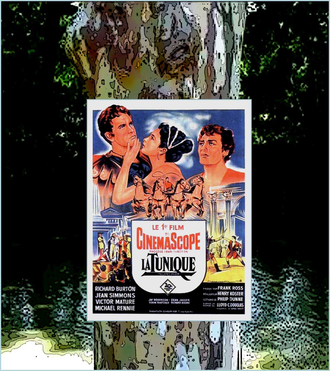 ![]() Le gros platane est aussi sacrifié. Comme une figure de proue, il annonçait le film alors projeté. Je me souviens de "La Tunique" (1953), premier film en cinémascope présenté en grandes pompes dans la salle du village ! (Voir ci-dessous) |
