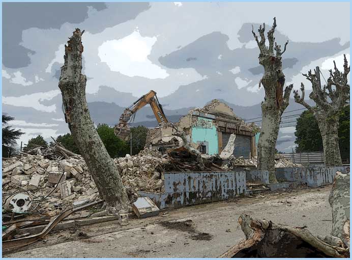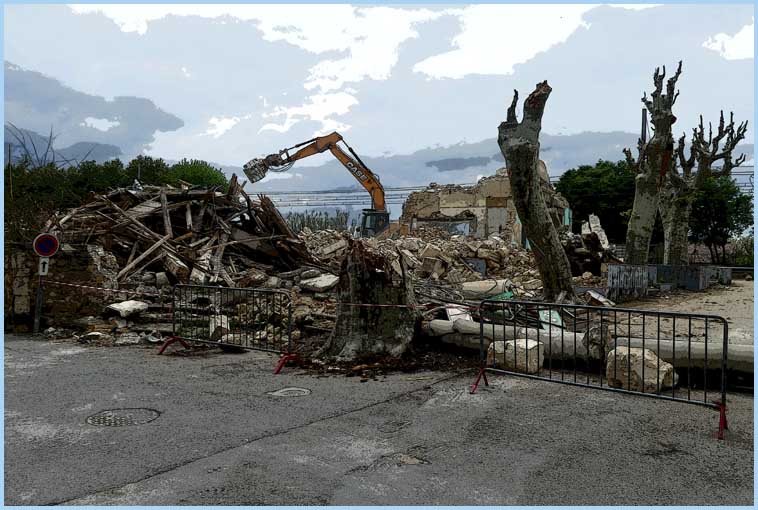 de Mondragon - Travaux - Mardi 23 Avril 2019 Réaménagement du centre ancien (suite) Adieu le Café de la Gare, jadis couplé avec le cinéma...! |