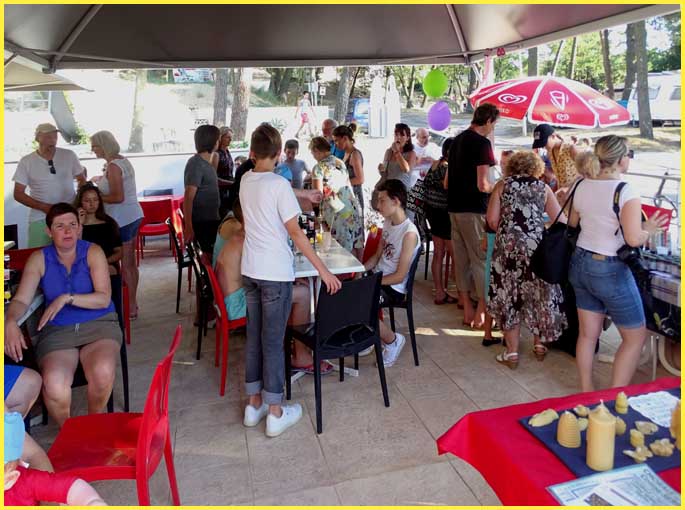 Chaque été, le Syndicat d’initiative de Bollène fait sa tournée de bienvenue, avec dégustation de vins et produits du terroir, auprès des touristes. Nous l’avons suivi jusqu’au camping « La Pinède en Provence » à Mondragon, géré avec succès depuis trois ans par Patrick Prudhomme et ses proches.