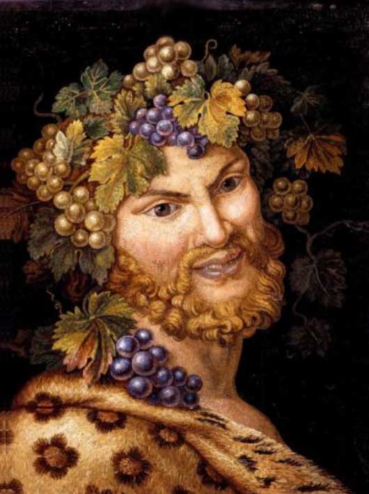 Cette mythologie se coiffe de vigne comme Bacchus.