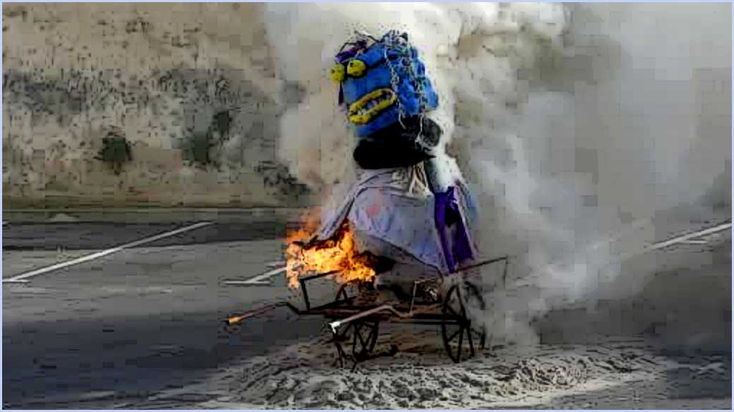 Seul bémol : un Mistral violent obligeant sa crémation à l’écart de la foule, maintenue à distance. Claquant dans le vent, des capes multicolores étaient celles du Sou, entièrement déguisé en héros. D’une confondante bonhomie, ces jeux carnavalesques empoignent notre totale adhésion !   J. P.
