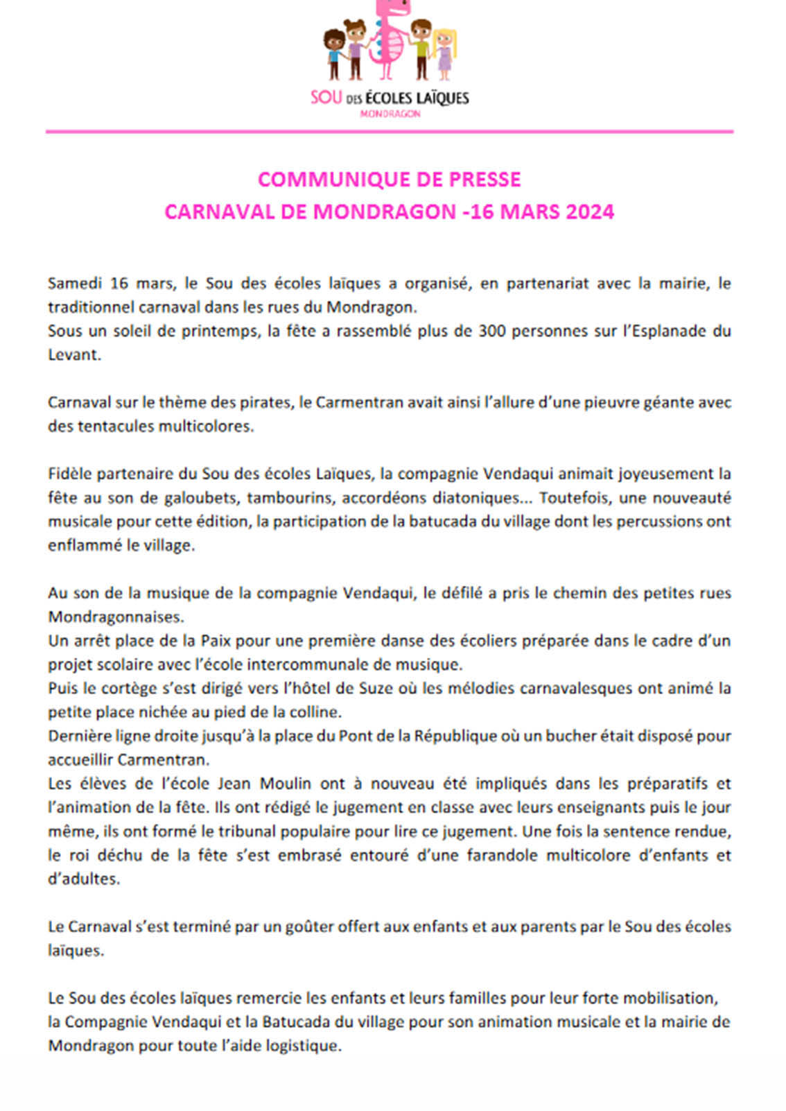 ![]() Un communiqué de la présidente Sabine Gras Cliquer dessus pour l'agrandir |