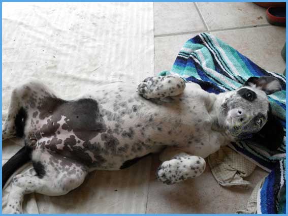palmées (chien d'eau ?), n'est pas tatoué, ne semble pas porter de