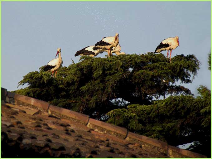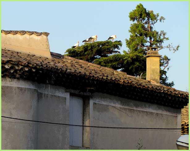 ![]() Nos chers gros oiseaux migrateurs nous ont fait l'honneur d'une halte en plein coeur de la cité. Voilà qui réconforte les amoureux de la nature à la fibre écolo dont fait partie mon voisin Martial Beaucamp (président de la Gaule-du-Rhône). C'est lui qui, de bon matin, m'a signalé l'événement. Illico, je suis allé photographier les cigognes.  |