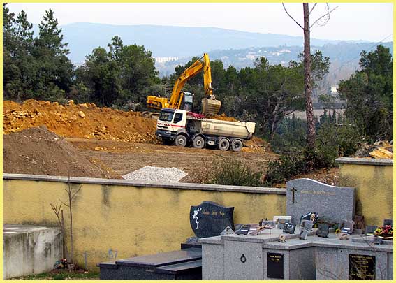 | En haut : l'actuel cimetière. En bas à droite : son extension côté Nord. |