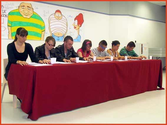 abouti à une lecture publique théâtralisée par six jeunes gens et