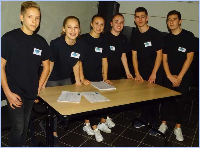 L’assemblée générale d’Andy City, en présence du corps enseignant et de divers partenaires, nous a décortiqué le projet. Il s’affine au gré de séances hebdomadaires de travail de 2 heures chaque jeudi. Ceci en partenariat avec EPA France, l’info-graphiste et marraine Ingrid Guillet-Ventajol, MM. Badin et Ferry (CNR), et, surtout, l’autre marraine et championne para-olympique de tennis de table Fanny Bertrand qui a inspiré le projet.