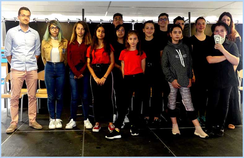 Depuis la rentrée, en octobre dernier, un atelier périscolaire autonome est assuré par Emmanuel Driffort et Catherine Salerne, respectivement professeurs de français et d’anglais. Treize collégiens motivés, issus des classes de 6ème à la 3ème, ont travaillé à l’élaboration d’une pièce, qu’ils ont jouée au sein du collège devant un public familial.