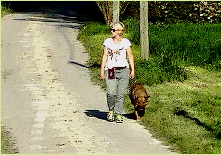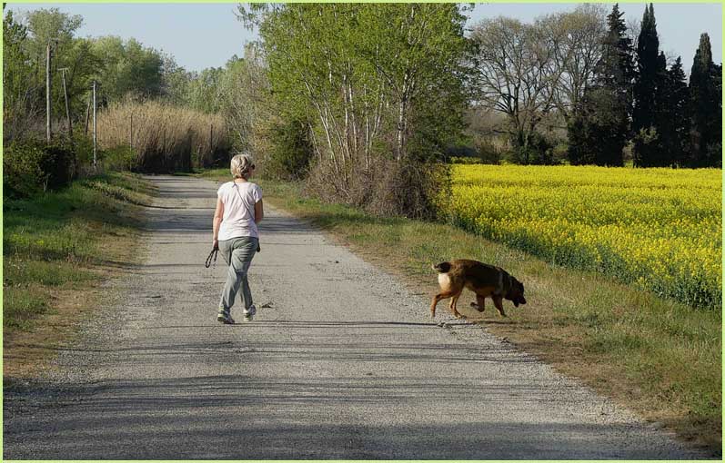 promeneuse, accompagnée d'un brave toutou. L'échange de quelques