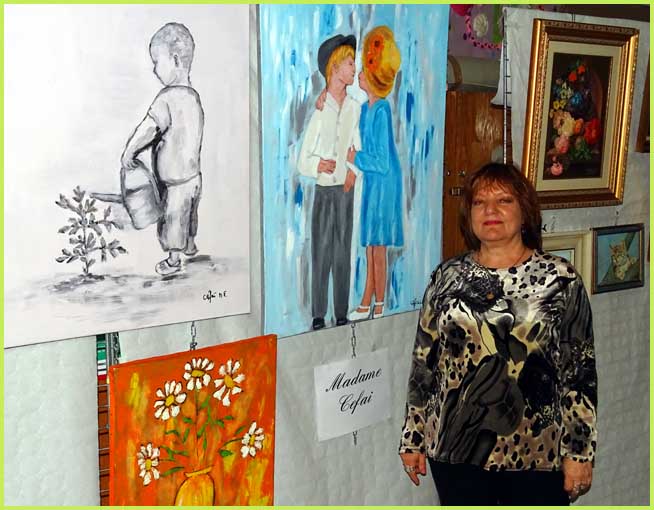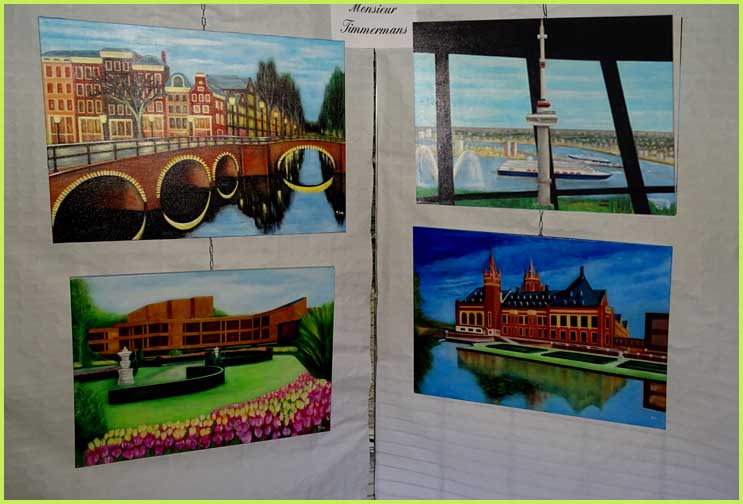 Le hall et la grande salle de l’Espace de l’Amitié ont donc été mis à disposition pour le temps d’un week-end. C’est un laps de temps un peu court pour un tel déploiement ! Y ont participé près d’une trentaine d’exposants. Ce sont tous des amateurs, au sens fort du terme. La plupart sont des peintres qui présentent chacun de 5 à 8 œuvres.
