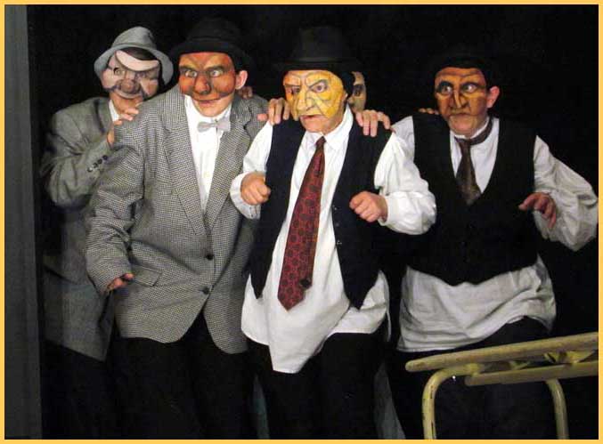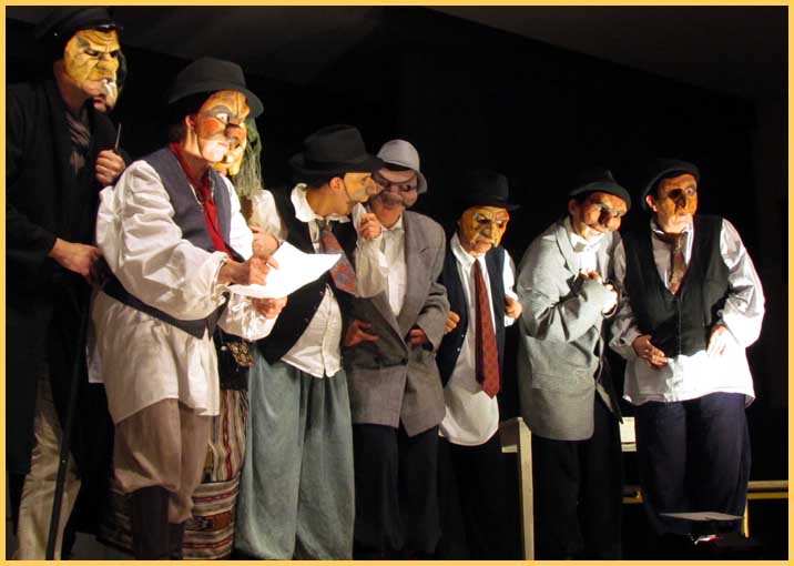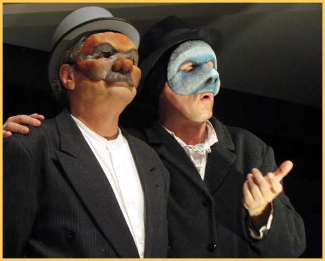Notre privilège est d’avoir vu les comédiens au travail, sous les directives de Frédéric Richaud (membre de Eclats de Scènes), obéi au doigt et à l’œil par une douzaine d’émules, dirigée au cordeau. « Nous renouons avec le théâtre russe aujourd’hui toujours si influent avec des situations qui font penser à notre époque : une classe dominante, un peuple avili, des magouilles politico-financières », explique-t-il. Le trait est peaufiné jusqu’au port outrancier de masques qui, selon lui, exacerbent l’expression des visages : « Cet artifice accroît la liberté de création et permet au théâtre de mieux dénoncer les travers de la société. »