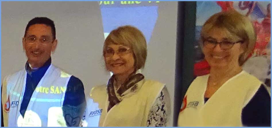 pour autant de promesses de don du sang, faites aux membres de l'amicale (à droite).