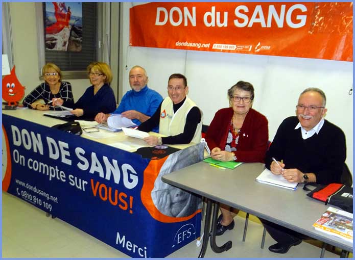 Un titre de donneur émérite est attribué à André Vigli et Maurice Arnaud. Comment trouver de nouveaux donneurs et les fidéliser ? Profil type : générosité, bonne santé, fréquence de don 1,72 fois l’an, alors que sont possibles 6 fois pour un homme et 4 fois pour une femme ! Parvenir à 2 fois serait déjà bon. Théoriquement, un médecin peut accueillir 14 personnes dans l’heure. Mais un manque d’effectifs de l’Etablissement français du sang (EFS) n’est pas en adéquation avec les efforts déployés par l’amicale. Le temps d’attente (presque 2 heures) n’incite guère au don. Une amélioration est toutefois perçue dans l’accueil : documents pré-don à consulter, coloriages et jeux pour les enfants, etc. Autres atouts : le site face book, l’affichage d’information. L’Union départementale est sollicitée pour la réalisation de 30 cartes de vœux destinées à remercier les sponsors.
