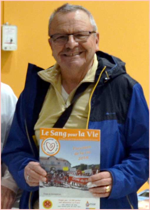Il a vivement été remercié et fêté par l’amicale des donneurs de sang bénévoles (ADSB) et a promis qu’il reviendrait, lors de la prochaine collecte, pour accompagner son petit-fils, tout juste majeur et donc apte à donner son sang. Un bel exemple de transmission.