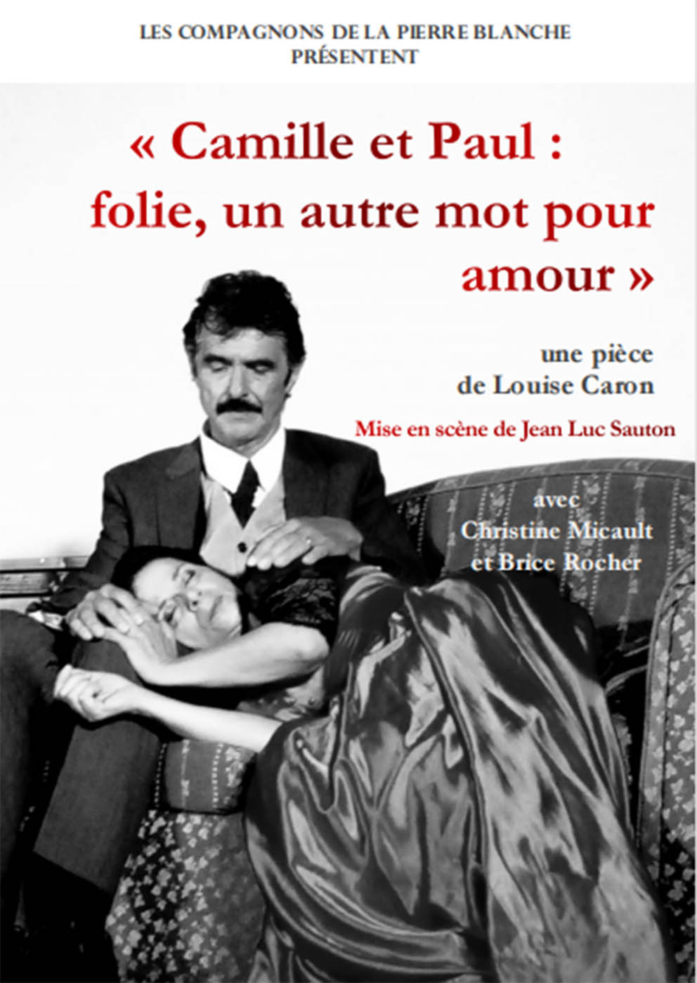 Pour celles et ceux qui auraient loupé l'immanquable, les Compagnons de la Pierre Blanche de Saint-Paul-trois-Châteaux viennent à Bollène pour y rejouer "Camille et Paul : folie, un autre mot pour amour", une pièce de Louise Caron, mise en scène par Jean-Luc Sauton, avec les comédiens Christine Micault et Brice Rocher. Cette représentation est organisée au profit de l'association des Donneurs de sang bénévole de Bollène. Rendez-vous le samedi 1er octobre à 20h30 salle Georges Brassens. Entrée 10 €.  |