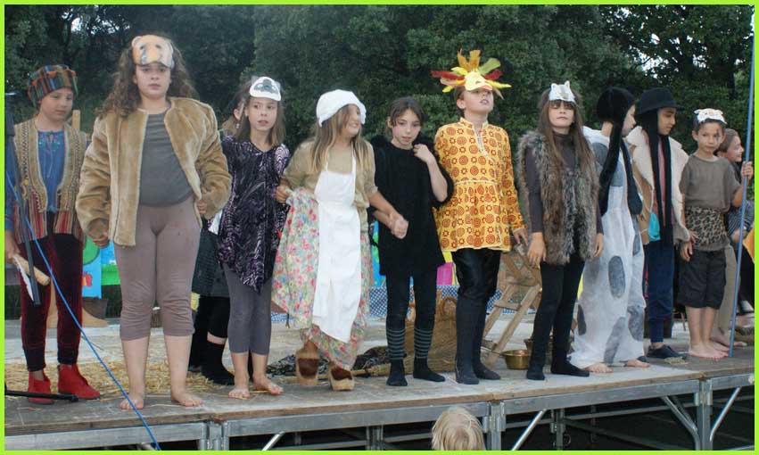 Tous les spectacles n'y sont pas (c'est impossible). Au final, voici une sorte de conte préhistorique avec d'étonnants costumes.