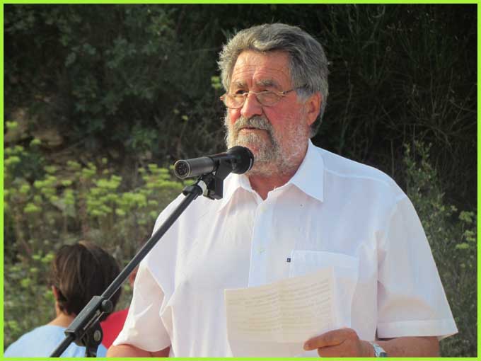 Durant l'entracte, le maire Christian Peyron (au centre) félicite les enfants "qui vont peut-être quitter, avec un peu de nostalgie,