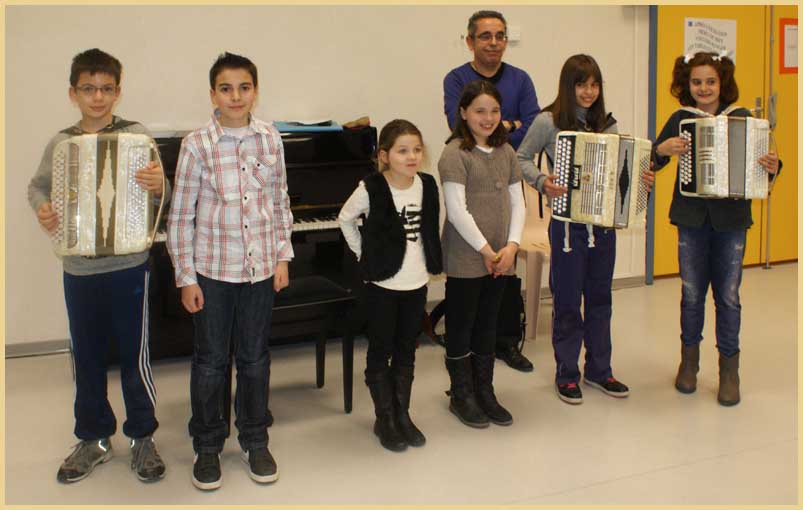 Michel Pallarès et ses élèves, classe de piano et accordéon.