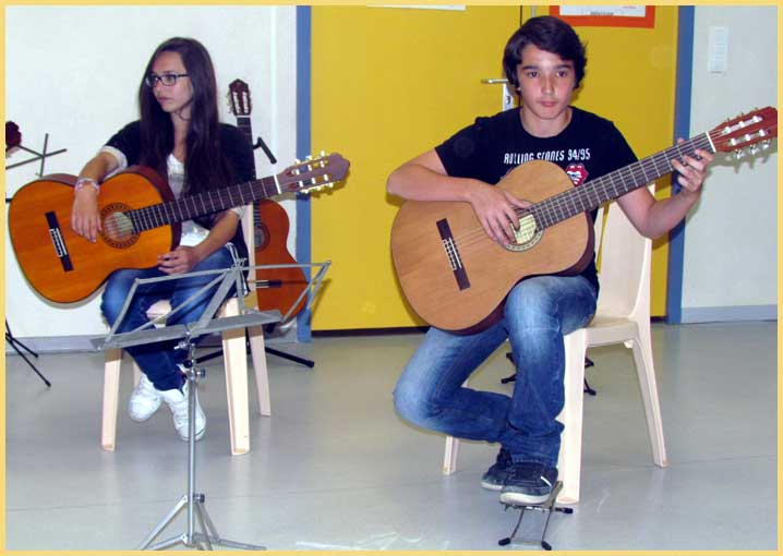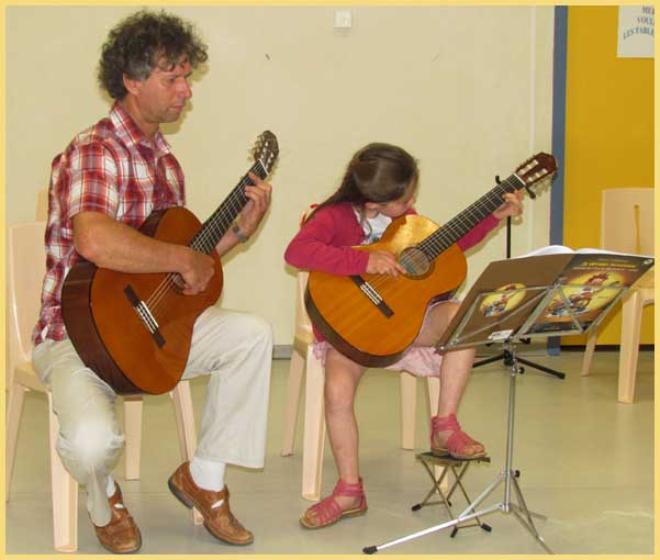 L’ambiance bon enfant et l’indulgence du public sont de mise. Des débutants en sont encore au seuil de l’enseignement musical et cherchent leurs notes. D’autres parviennent à les caler sur un rythme. Le patient crescendo aboutit au décoinçage de quelques partitions bien senties. Le tout porte sur un répertoire varié : tradition provençale, danse péruvienne, étude de Carcassi, canon de J. S. Bach, marche irlandaise et autres variations rock ou jazzy.