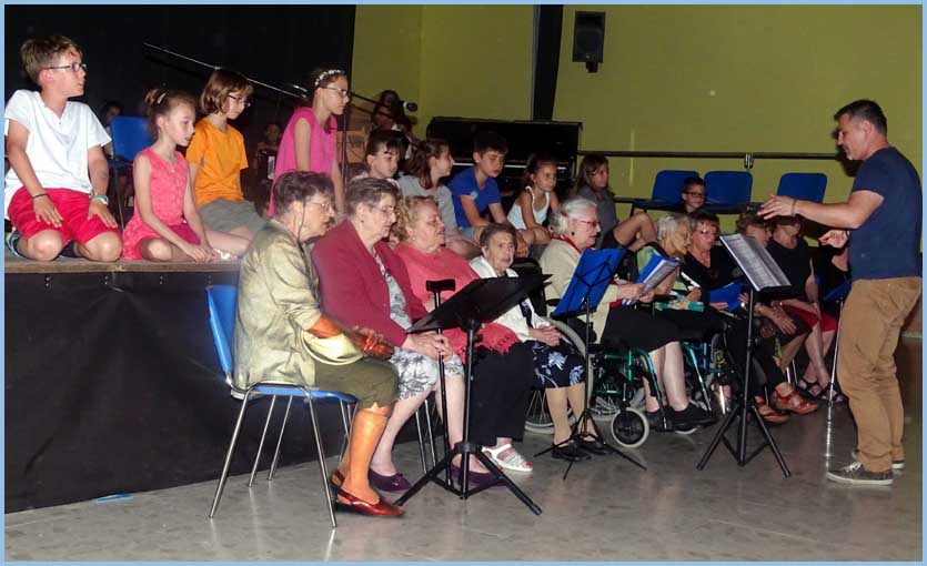 Depuis la rentrée 2015, une innovation importante porte sur l’accueil d’une chorale à la Résidence des Balcons de Peyrafeux, en partenariat avec le Centre hospitalier de Pont-Saint-Esprit, et ouverte aux seniors mondragonnais. Dirigé par Didier Llorens, et accompagné par les enfants du cours d’éveil musical, ce chœur intergénérationnel a considérablement rehaussé le concert de clôture avec deux morceaux adéquats : « On écrit sur les murs » (Kids United) et « Prendre un enfant par la main » (Yves Duteil), ovationnés par le public.   J. P.