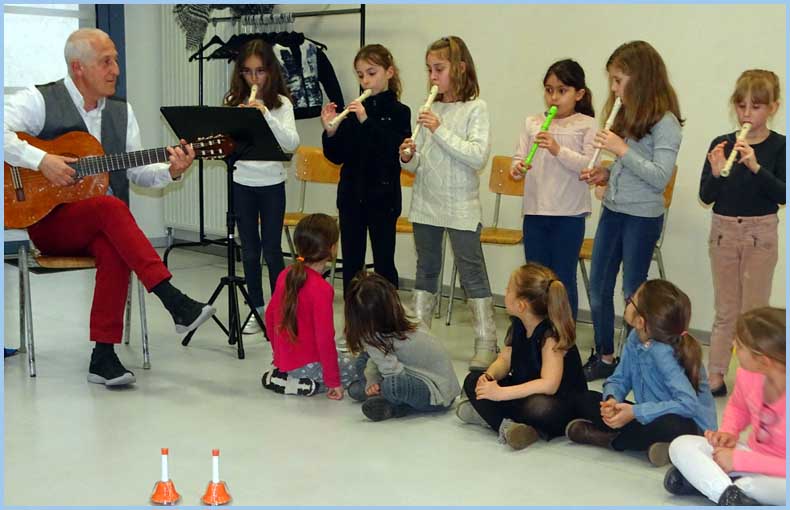 mimés et accompagnés à la guitare, à la flûte et au carillon,