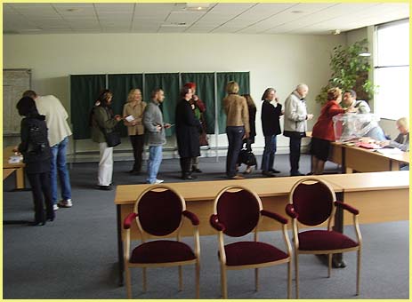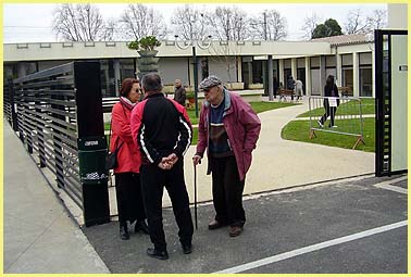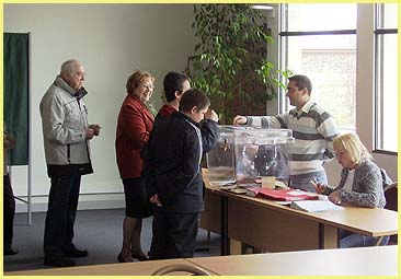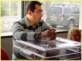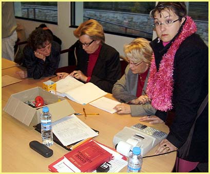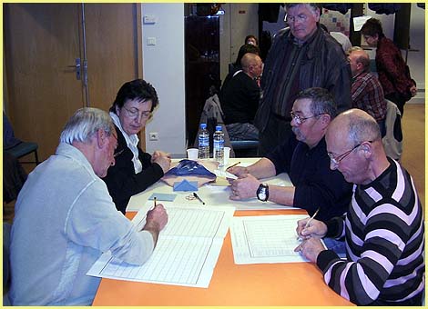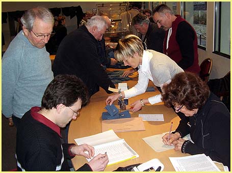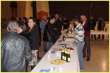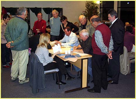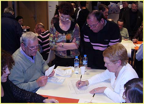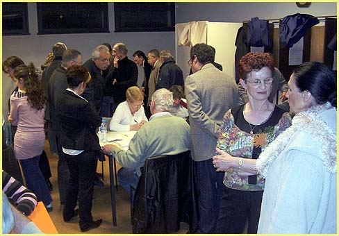 p Le maire va de table en table. Rappelons qu'il y a trois bureaux de vote : deux à la mairie, un au hameau de Derboux.  |