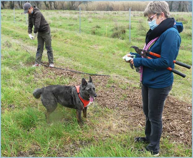 ![]() Bruna donne de la voix... Les pommiers abandonnés seront-ils arrachés ? Non : ils nourriront les oiseaux !  |