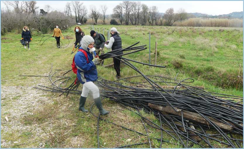 ![]() Quant aux pommiers abandonnés de Lamiat, les voici débarrassés de leur goutte-à-goutte inutile. A la fois généreux et dérisoire, ce chantier agreste atteint des sommets de sympathie envers Dame Nature !  |