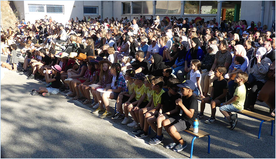 ![]() En rangs serrés, les familles ravies en oublient la canicule.  |