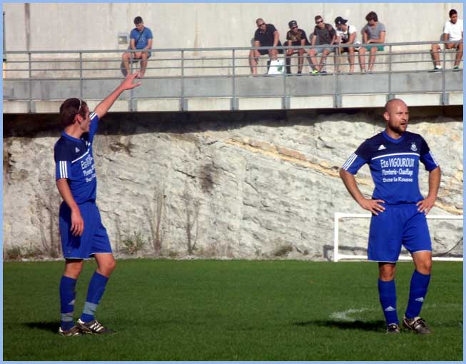 La 1 a été phénoménale, c’est le mot et quand l’équipe est a peu près au complet, il n’y a pas photo, elle  est imbattable quand elle joue comme cela ! Nos butteurs ont encore marqué. Nabil (El Ghalloute), encore un doublé ! Kamal (El Ouardi) 1 et Valentin (Gremont) 1 but sur penalty, sans oublier Julien (Cavagna) qui, revenu de sa blessure, a été un poison pour la défense pendant une mi-temps et très lucide sur le deuxième but de Nabil ! Bref, vous me voyez arriver, toute l’équipe à été bonne mais peut-être aussi grâce au discours musclé de l’entraîneur avant le match ! On peut dire que c’était des paroles d’hommes ! Les oreilles en chauffent encore !