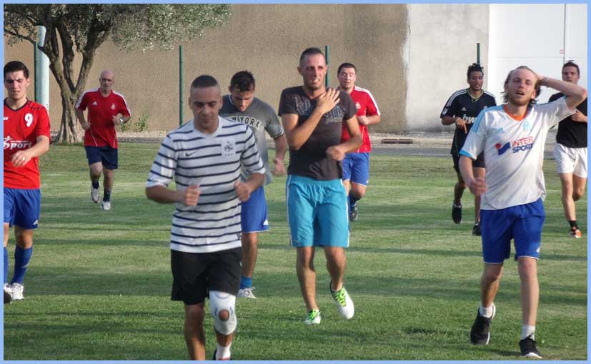 Premier match de préparation contre une équipe de la Drôme « Roussas ». Premier match pour Clément en tant qu’entraîneur. Match qui lui a permis de juger ses joueurs et, avec l’aide de David, de commencer à imaginer une équipe pour le premier match de coupe. Devant le nombre incroyable de joueurs présents, les entraîneurs des deux équipes ont décidé de faire un match en 3 fois 30mn.