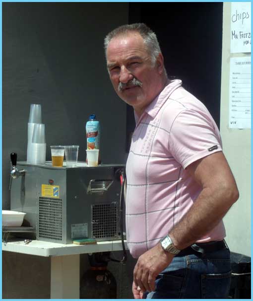 Clément surveille ses joueurs                                   Un des clowns du club met l'ambiance