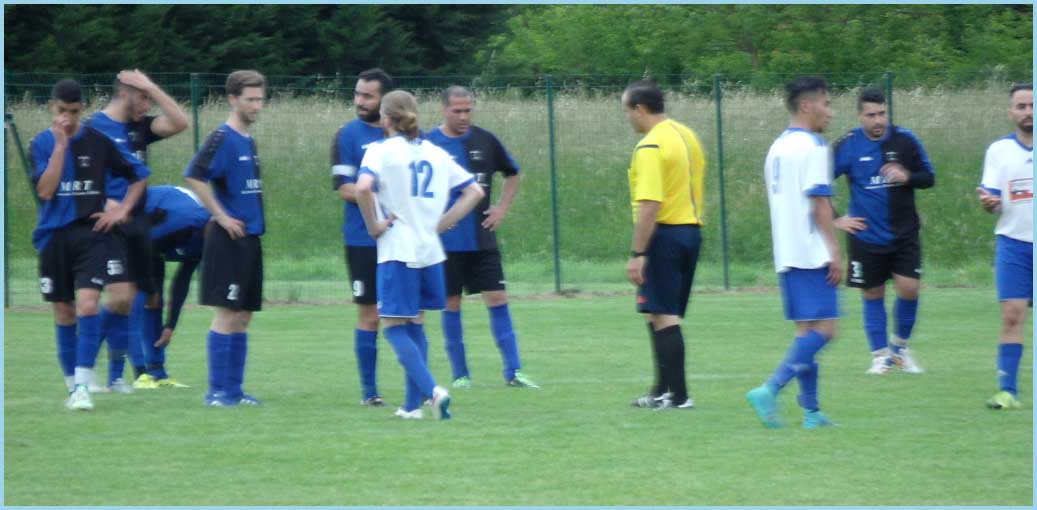La une, après avoir mené dès les premières minutes par Kamal (encore lui !), s’est fait rattraper avant la mi-temps. Encore et encore des maladresses devant les buts qui n’ont pas permis d’obtenir une victoire pourtant méritée. David (Vigouroux), notre joker de luxe et polyvalent, a encore fait des prouesses dans les buts, en remplacement de notre gardien (Rudy) blessé. Pour exemple, une sortie dans les pieds où il ne fallait vraiment pas avoir peur du contact !  Très bon match de Mickael et de Farid qui ont tenu la baraque ce dimanche. Les dimanches pour les arbitres ne se ressemblent pas et ce week-end, l’homme en noir ne sera pas convoqué pour arbitrer la coupe du monde !