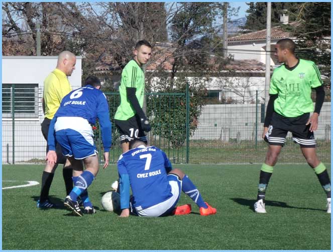 « Nous sommes revenus de ces deux déplacements avec 2 x 4 buts dans nos bagages. Deux 4 à 0 qui ont du mal à passer mais très logique ! La réserve, avec ses moyens, s’est bien battue mais Courthézon était vraiment beaucoup plus fort que nous. Quant à la une, je pense que la mouche Tsé –Tsé avait piqué tous nos joueurs ! L’équipe entière dormait sur le terrain, aucune passe, aucun tir cadré, des cadeaux aux adversaires, bref la Bérézina ! Je n’arrive pas à comprendre pourquoi sur deux dimanches, nous n’arrivons pas à voir les mêmes joueurs sur le terrain. Il va falloir se bouger un peu plus si nous voulons rester dans les premières places. Ce qui m’énerve un peu, c’est que nous avons le potentiel pour y arriver, mais il va falloir se faire un peu plus mal qu’hier. Test grandeur nature dimanche prochain en coupe chez les « Franco-Turc d’Avignon ».                                 Le président