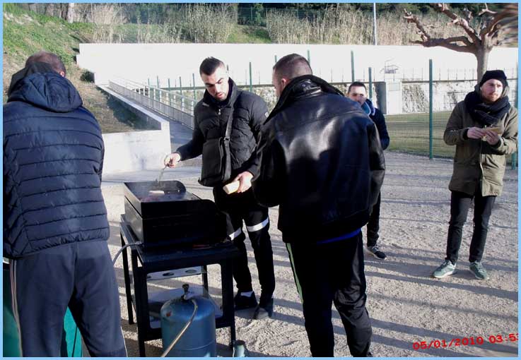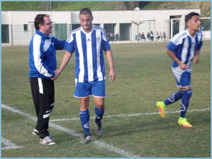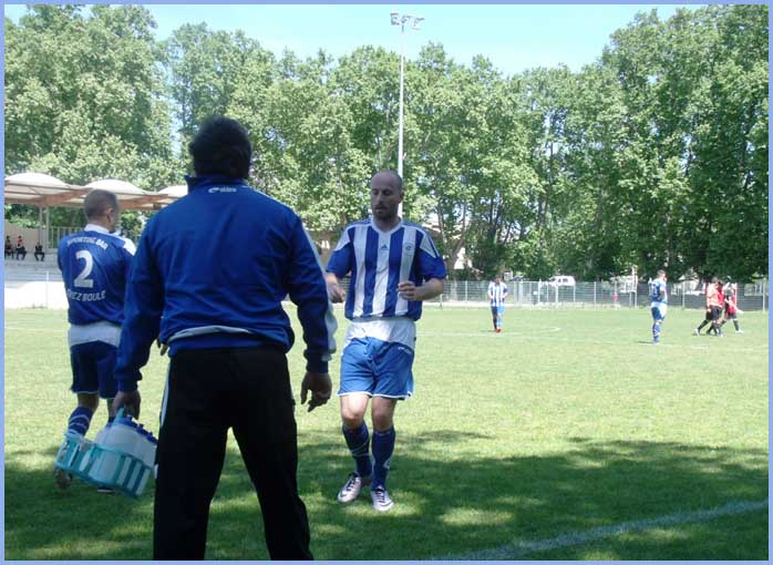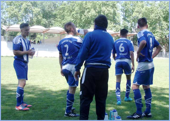 L'équipe première qui a atomisé Bédarrides.     L'entraîneur donne des conseils pendant une pause.
