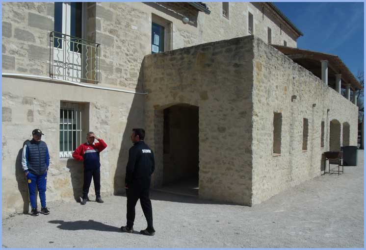 La visite amicale du maire (à droite)                      Derrière la grille : le challenge...